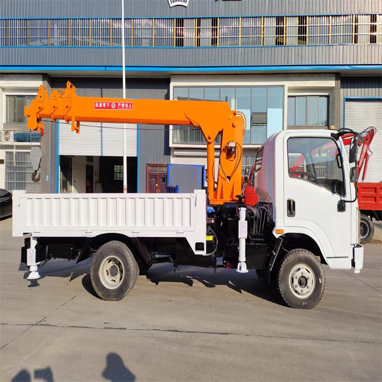 石河子市重汽豪曼小型四吨直臂蓝牌随车吊厂家 起重机价格